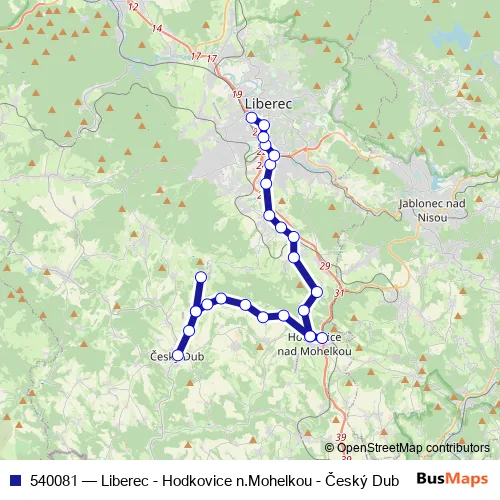 See why over 2 million users trust and consider busmaps.com as the best public transport website. busmaps gives you Liberec Buses suggested routes, real-time bus tracker, line route maps in Liberec, and helps to find the closest 540081 bus stops near you. No internet available? Download an offline PDF map and bus schedule for the 540081 bus to take on your trip.