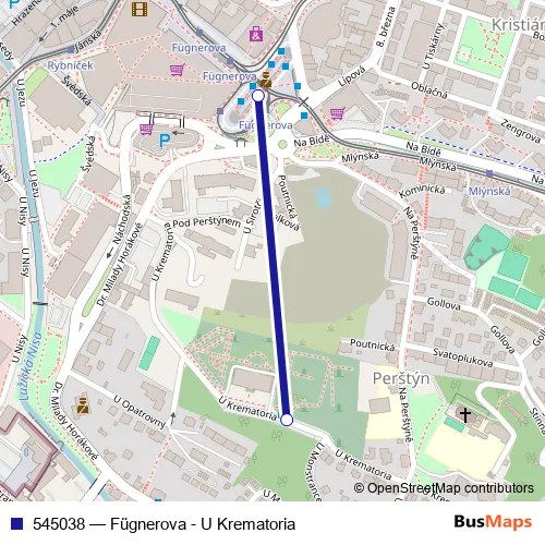 Click here to view the nearest 545038 - Fügnerova - U Krematoria bus stop.