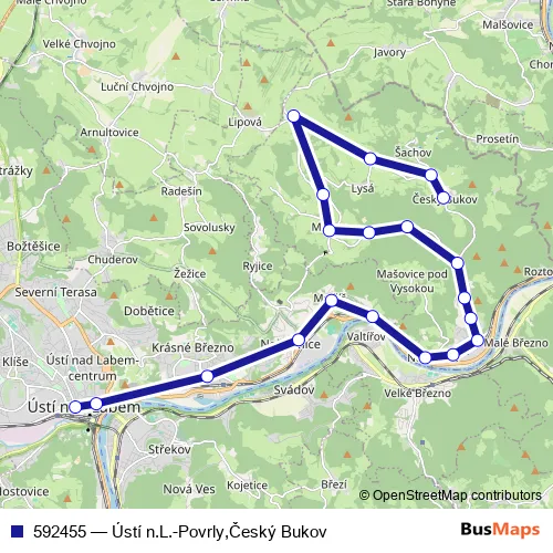 Bus 592455 - Ústí n.L.-Povrly,Český Bukov: Full Schedule in Usti nad Labem