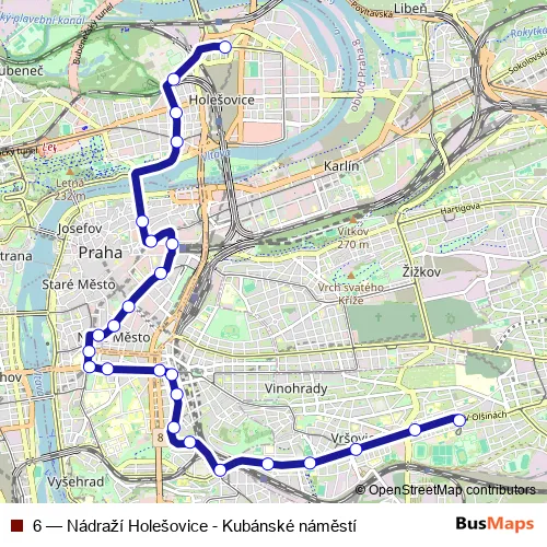 See why over 2 million users trust and consider busmaps.com as the best public transport website. busmaps gives you Prague Trams suggested routes, real-time bus tracker, line route maps in Prague, and helps to find the closest 6 tram stops near you. No internet available? Download an offline PDF map and bus schedule for the 6 tram to take on your trip.