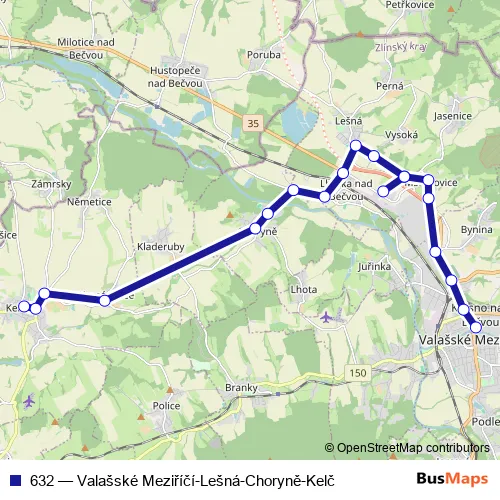 Click here to view the nearest 632 - Valašské Meziříčí-Lešná-Choryně-Kelč bus stop.
