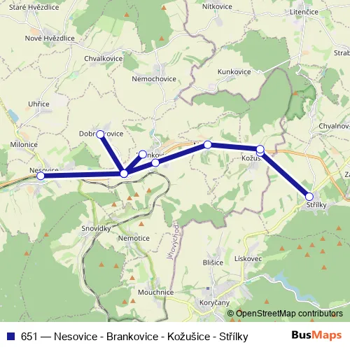 Click here to view the nearest 651 - Nesovice - Brankovice - Kožušice - Střílky bus stop.