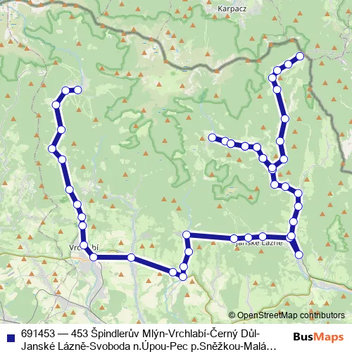 Transdev Čechy s.r.o. 691453 453 Špindlerův Mlýn-Vrchlabí-Černý Důl-Janské Lázně-Svoboda n.Úpou-Pec p.Sněžkou-Malá Úpa Bus