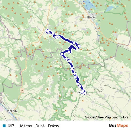 Click here to view the nearest 697 - Mšeno - Dubá - Doksy bus stop.