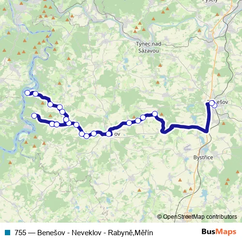 Click here to view the nearest 755 - Benešov - Neveklov - Rabyně,Měřín bus stop.