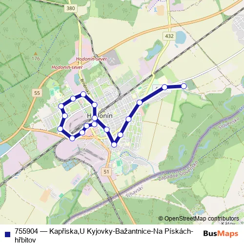 Bus 755904 - Kapřiska,U Kyjovky-Bažantnice-Na Pískách-hřbitov: Full Schedule in Skalica