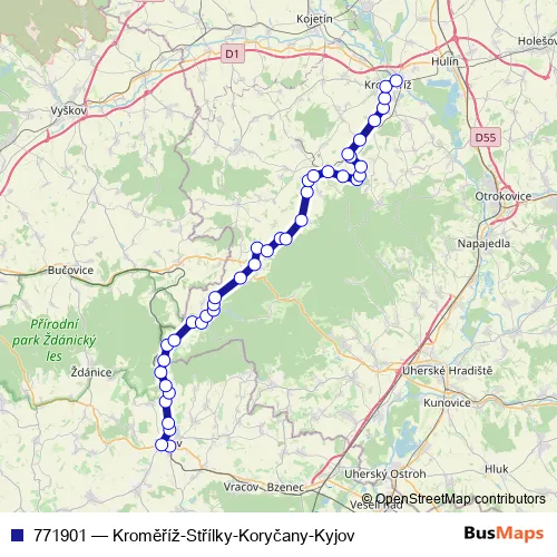 Bus 771901 - Kroměříž-Střílky-Koryčany-Kyjov: Full Schedule in Zlin