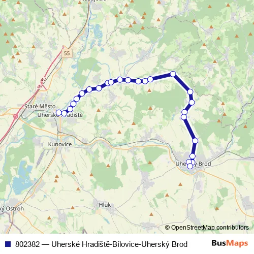 Click here to view the nearest 802382 - Uherské Hradiště-Bílovice-Uherský Brod bus stop.