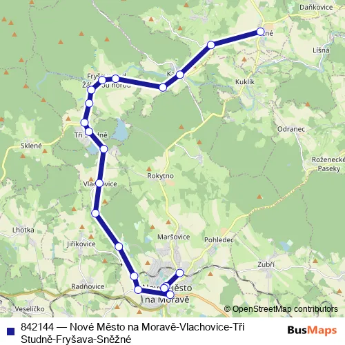 Click here to view the nearest 842144 - Nové Město na Moravě-Vlachovice-Tři Studně-Fryšava-Sněžné bus stop.