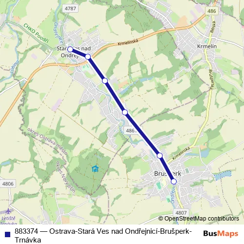 Click here to view the nearest 883374 - Ostrava-Stará Ves nad Ondřejnicí-Brušperk-Trnávka bus stop.