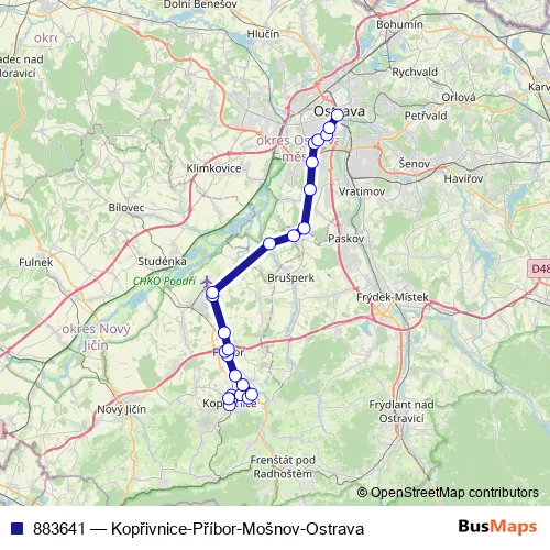 Click here to view the nearest 883641 - Kopřivnice-Příbor-Mošnov-Ostrava bus stop.
