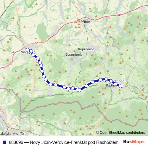 Click here to view the nearest 883696 - Nový Jičín-Veřovice-Frenštát pod Radhoštěm bus stop.