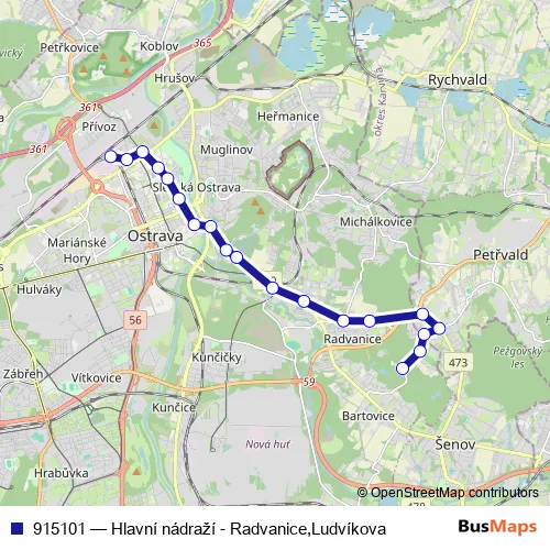 Bus 915101 - Hlavní nádraží - Radvanice,Ludvíkova: Full Schedule in Ostrava