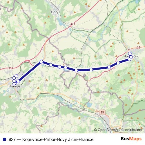 Click here to view the nearest 927 - Kopřivnice-Příbor-Nový Jičín-Hranice bus stop.