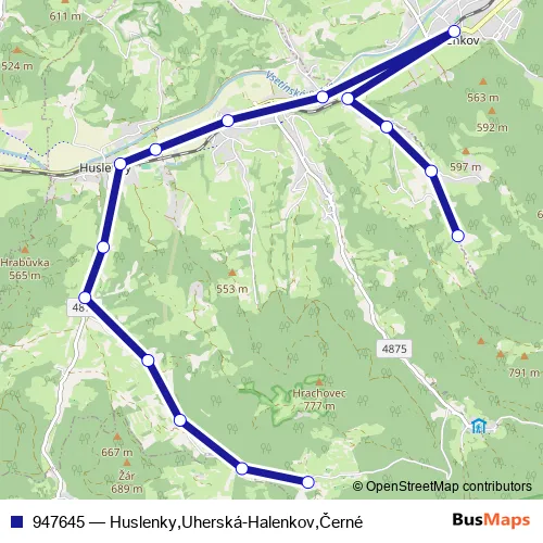 Click here to view the nearest 947645 - Huslenky,Uherská-Halenkov,Černé bus stop.