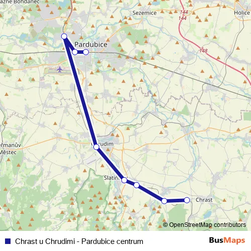 The first stop of the Chrast u Chrudimi - Pardubice centrum rail route is Chrast u Chrudimi and the last stop is Pardubice centrum. Chrast u Chrudimi - Pardubice centrum (Chrast u Chrudimi - Pardubice centrum) is operational during denně.