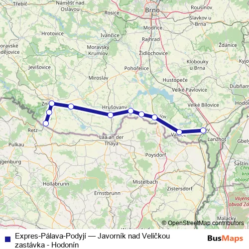 Click here to view the nearest Expres-Pálava-Podyjí - Javorník nad Veličkou zastávka - Hodonín rail stop.