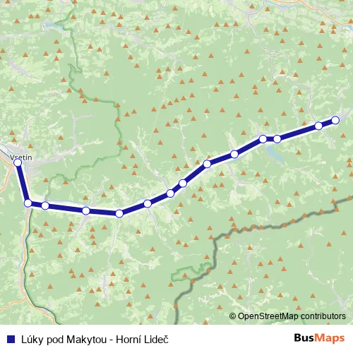 Vsetín. Lúky pod Makytou - Horní Lideč (Lúky pod Makytou - Horní Lideč) is operational during ve všední dny.