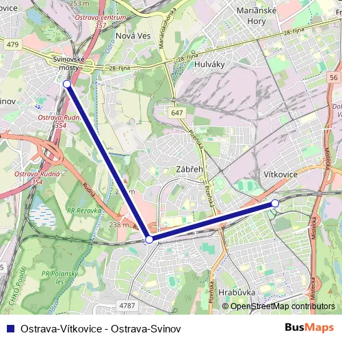 Ostrava-Vítkovice - Ostrava-Svinov rail Route Map
