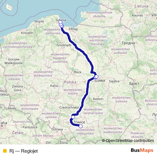 Rail Rj - Regiojet: Full Schedule in Warsaw