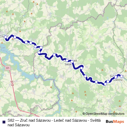Click here to view the nearest S82 - Zruč nad Sázavou - Ledeč nad Sázavou - Světlá nad Sázavou rail stop.