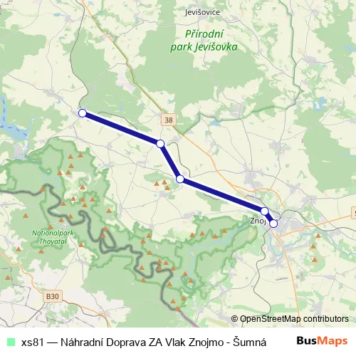 Bus xs81 - Náhradní Doprava ZA Vlak Znojmo - Šumná: Full Schedule in Znojmo
