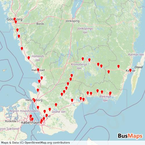 Öresundståg operates in the following cities: Copenhagen, Helsingborg, Goeteborg, Kalmar, Tarnby, Kristianstad, Malmoe, Alvesta, Halmstad.