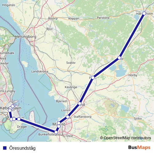 The first stop of the Öresundståg rail route is Köpenhamn Österport and the last stop is Hässleholm Centralstation. Öresundståg is operational during hver dag.