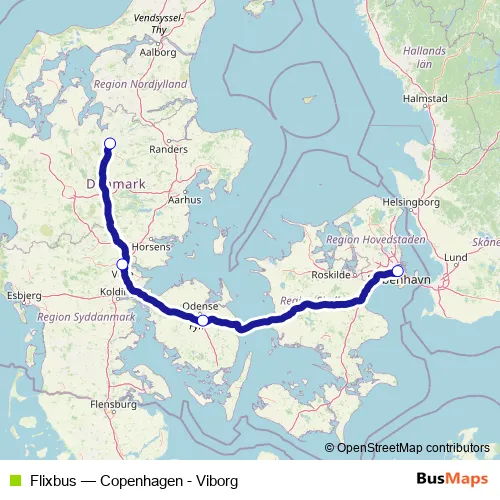 Click here to view the nearest Flixbus - Copenhagen - Viborg bus stop.