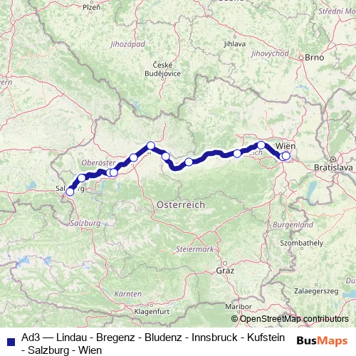 Rail Ad3 - Lindau - Bregenz - Bludenz - Innsbruck - Kufstein - Salzburg - Wien: Full Schedule in Salzburg