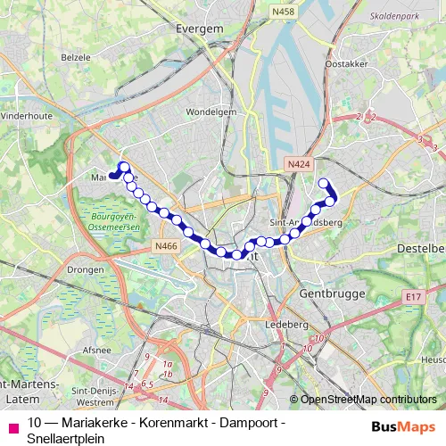 Click here to view the nearest 10 - Mariakerke - Korenmarkt - Dampoort - Snellaertplein bus stop.