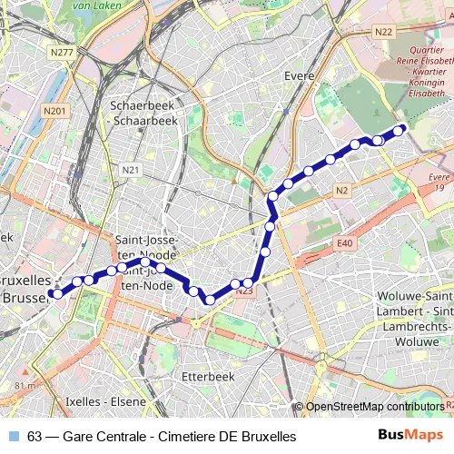 See why over 2 million users trust and consider busmaps.com as the best public transport website. busmaps gives you Brussels Buses suggested routes, real-time bus tracker, line route maps in Brussels, and helps to find the closest 63 bus stops near you. No internet available? Download an offline PDF map and bus schedule for the 63 bus to take on your trip.
