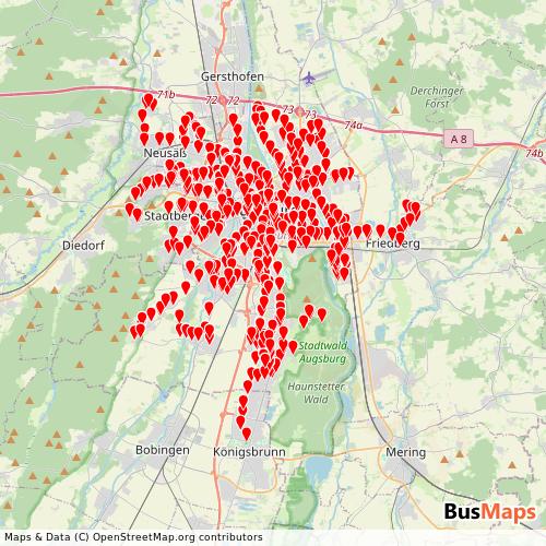 Augsburger Verkehrsgesellschaft, based in Augsburg, Bavaria, Germany, offers a reliable and comprehensive network of public transport services, including Bus and Tram. Our platform provides detailed and up-to-date information on routes, schedules, stops, and arrivals for all services operated by Augsburger Verkehrsgesellschaft. Whether you're planning your daily commute or exploring the city, our tools help you find the nearest stop and the best route to your destination.