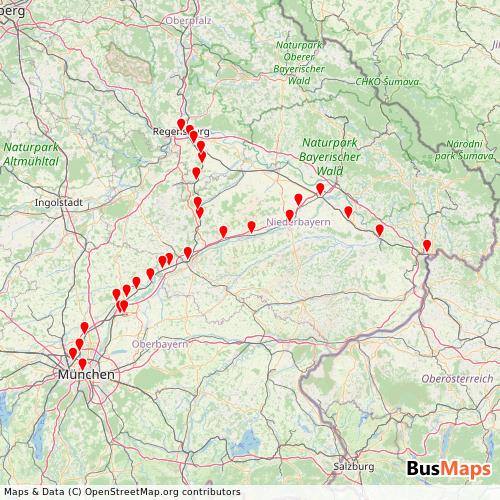 DB Regio AG Bayern operates in the following cities: Landshut, Munich, Regensburg.