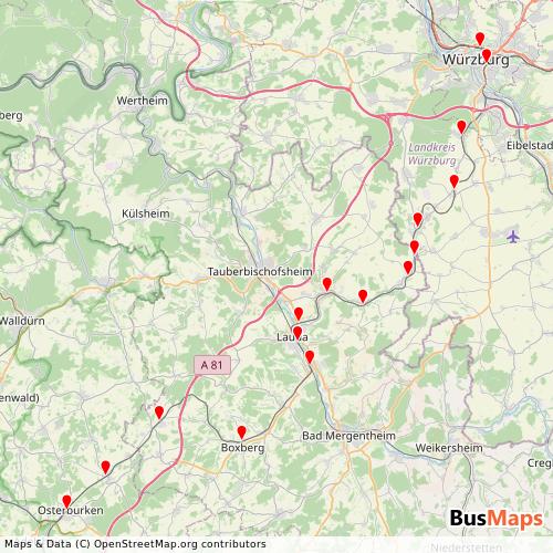 DB Regio AG Bayern operates in the following cities: Tauberbischofsheim.