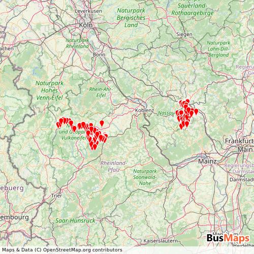 DB Regio Bus Mitte Gmbh1 operates in the following cities: Cochem, Hahnstatten, Limburg an der Lahn, Lutzerath, Ulmen, Daun, Katzenelnbogen.