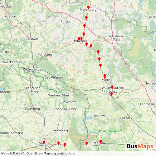 Hanseatische Eisenbahn operates in the following cities: Pritzwalk, Schoenhausen.