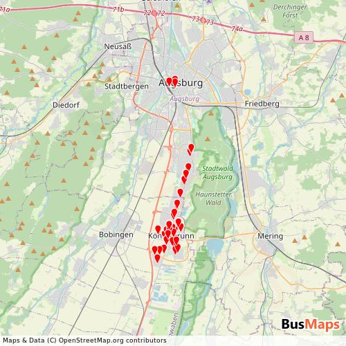Koenigsbrunn Stadtbus operates in the following cities: Augsburg, Konigsbrunn.