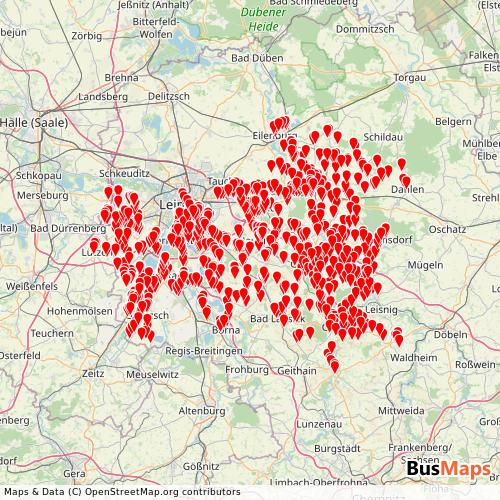 Regionalbus Leipzig Gmbh operates in the following cities: Grimma, Wurzen, Leipzig, Falkenhain, Zwenkau, Naunhof, Borna, Colditz, Markranstaedt, Nerchau, Bad Lausick, Brandis, Kitzen, Machern, Mutzschen, Ostrau, Trebsen, Belgershain, Groitzsch, Hohburg, Markkleeberg, Thallwitz, Zschadrass.