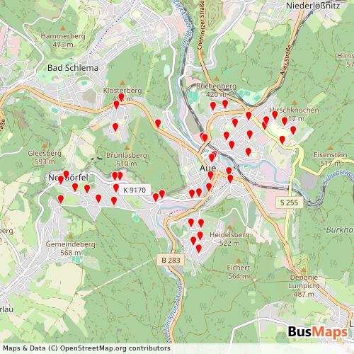 SV Aue Bus coverage area map