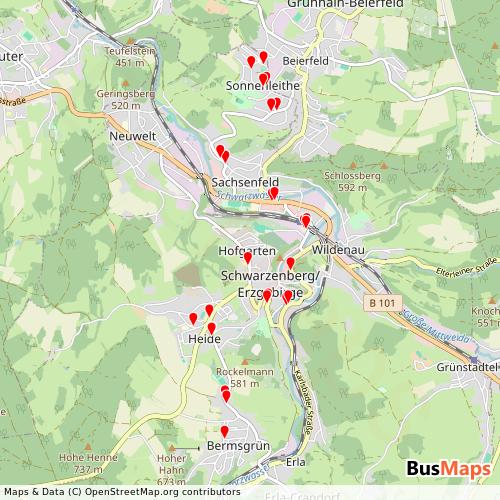 SV Schwarzenberg Bus, based in Schwarzenberg, Saxony, Germany, offers a reliable and comprehensive network of public transport services, including Bus. Our platform provides detailed and up-to-date information on routes, schedules, stops, and arrivals for all services operated by SV Schwarzenberg Bus. Whether you're planning your daily commute or exploring the city, our tools help you find the nearest stop and the best route to your destination.