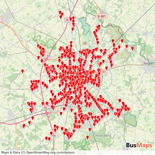 Stadtwerke Münster, based in Muenster, North Rhine-Westphalia, Germany, offers a network of 63 public transport routes, including Bus. Our platform provides detailed and up-to-date information on routes, schedules, stops, and arrivals for all services operated by Stadtwerke Münster. Whether you're planning your daily commute or exploring the city, our tools help you find the nearest stop and the best route to your destination.