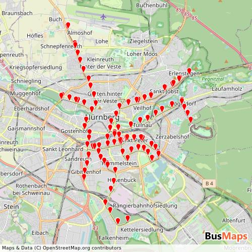 Tram Nürnberg coverage area map