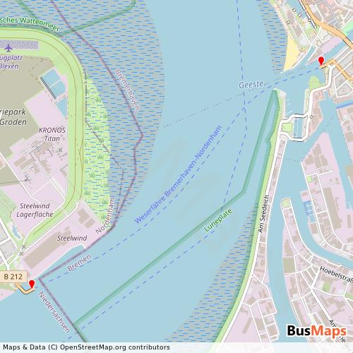 Weserfähre Gmbh, based in Bremerhaven, City state Bremen, Germany, offers a reliable and comprehensive network of public transport services, including Ferry. Our platform provides detailed and up-to-date information on routes, schedules, stops, and arrivals for all services operated by Weserfähre Gmbh. Whether you're planning your daily commute or exploring the city, our tools help you find the nearest stop and the best route to your destination.