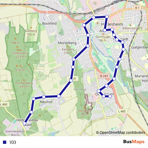 See why over 2 million users trust and consider busmaps.com as the best public transport website. busmaps gives you Hildesheim Buses suggested routes, real-time bus tracker, line route maps in Hildesheim, and helps to find the closest 103 bus stops near you. No internet available? Download an offline PDF map and bus schedule for the 103 bus to take on your trip.
