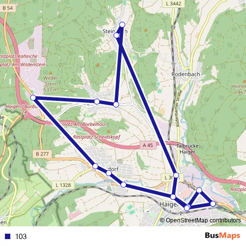 See why over 2 million users trust and consider busmaps.com as the best public transport website. busmaps gives you Haiger Buses suggested routes, real-time bus tracker, line route maps in Haiger, and helps to find the closest 103 bus stops near you. No internet available? Download an offline PDF map and bus schedule for the 103 bus to take on your trip.