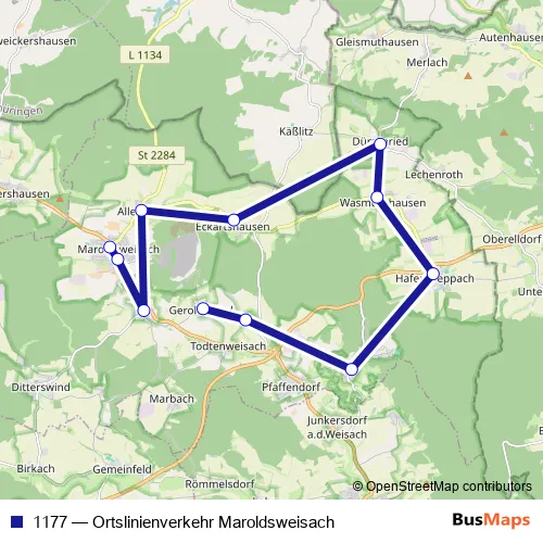 Click here to view the nearest 1177 - Ortslinienverkehr Maroldsweisach bus stop.