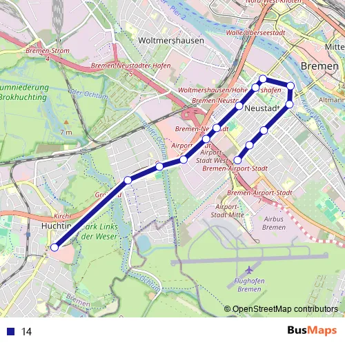 See why over 2 million users trust and consider busmaps.com as the best public transport website. busmaps gives you Bremen Trams suggested routes, real-time bus tracker, line route maps in Bremen, and helps to find the closest 14 tram stops near you. No internet available? Download an offline PDF map and bus schedule for the 14 tram to take on your trip.