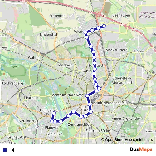 See why over 2 million users trust and consider busmaps.com as the best public transport website. busmaps gives you Leipzig Trams suggested routes, real-time bus tracker, line route maps in Leipzig, and helps to find the closest 14 tram stops near you. No internet available? Download an offline PDF map and bus schedule for the 14 tram to take on your trip.