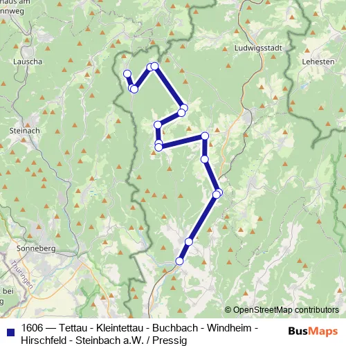 Click here to view the nearest 1606 - Tettau - Kleintettau - Buchbach - Windheim - Hirschfeld - Steinbach a.W. / Pressig bus stop.